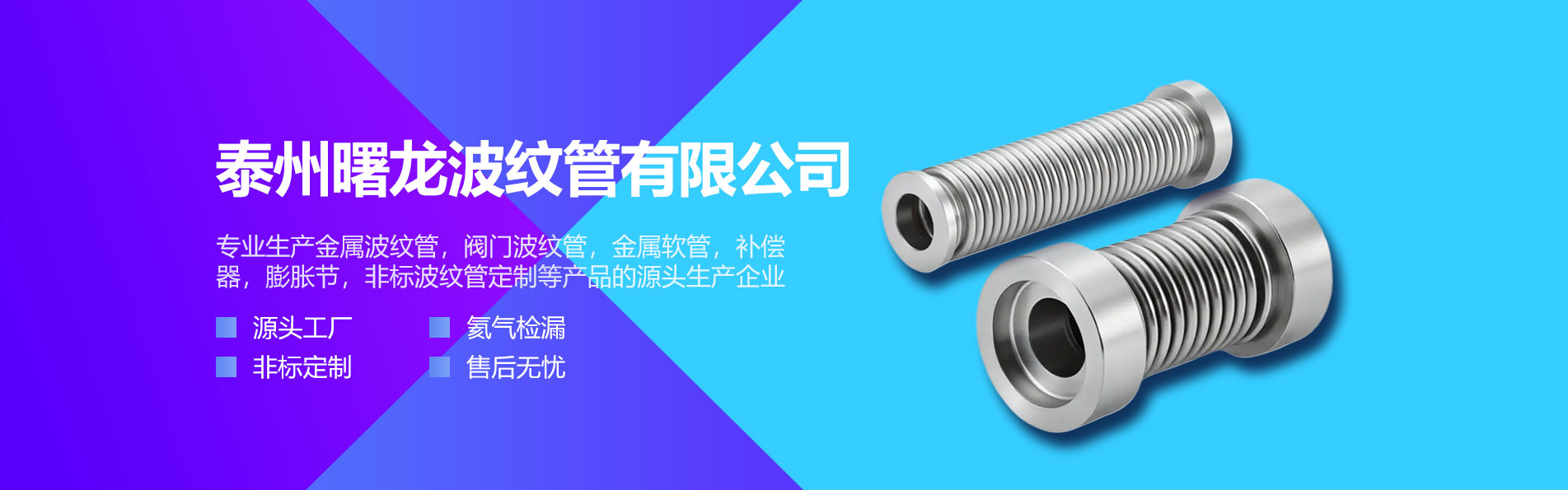 源头工厂factory泰州曙龙波纹管有限公司是专业生产金属波纹管,阀门波纹管,金属软管,补偿器膨胀节,非标波纹管定制等产品的源头生产企业。从需求到方案,全程技术支持,定制服务一步到位。